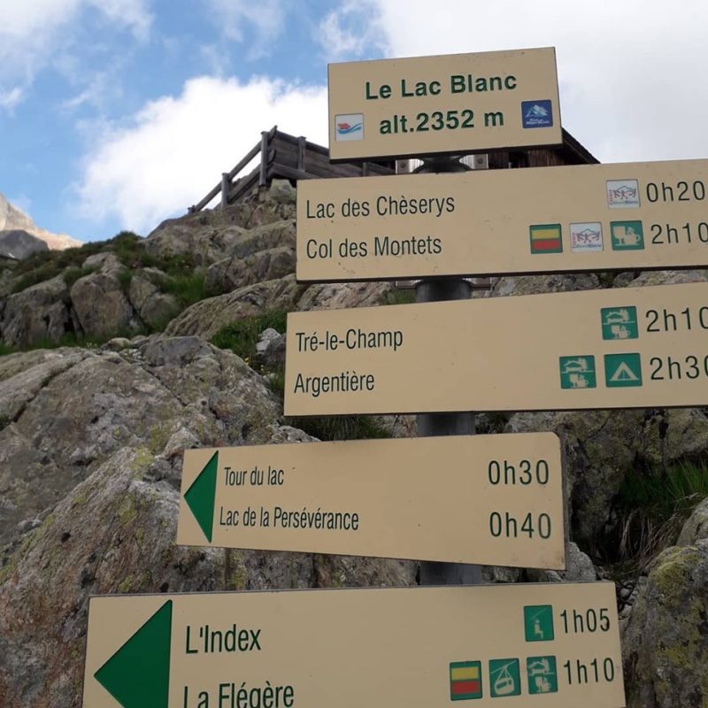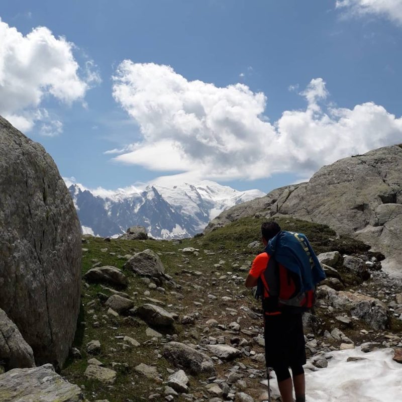Economizamos um dia em cada trecho longo que fizemos: de pouco acima de Courmayer até La Foully e de Trelechamp, acima de Argentiere, até Les Houches. Cada um destes trechos são desdobrados em dois dias no roteiro clássico do Tour de 11 dias. E foram os dias mais bonitos, opostos geograficamente em relação ao maciço do Mont Blanc e com visões espetaculares das cadeias de montanhas de cada lado, italiano e francês. Passamos por variantes altas nos dois trechos, pouco ou não utilizadas no Tour, e realmente só encontramos montanhistas locais ou poucos “turistas” como nós, sendo nosso quarto e oitavo dias, respectivamente.