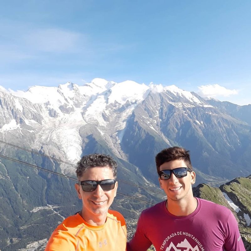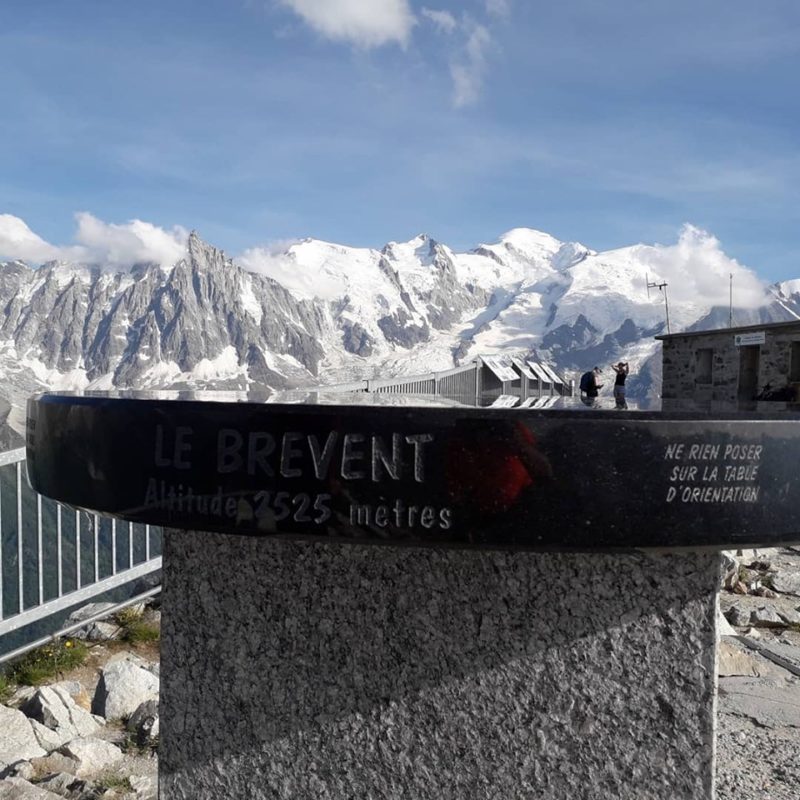 E ainda gastamos tanta energia que tivemos que parar para comer em um bar panorâmico, o que nos tomou em torno de 1h10. Já passava de 17h30, quando começamos a subida para o Brevent e com muita disposição e fazendo força mesmo, chegamos ao último cume do dia, a 2525 mts, em 1h. Mesmo preocupados com o horário, paramos para tirar fotos. A visão do Mont Blanc e das demais montanhas daquele ponto é magnífica.